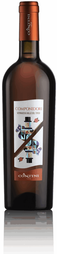 Il Componidori di Contini 1898 è una Vernaccia dal carattere unico, riconoscibile per il suo colore dorato, frutto di sei mesi di affinamento in botte scolma sotto un velo di Flor e successiva stabilizzazione a freddo, un processo che ne esalta l’identità e l’eleganza visiva.